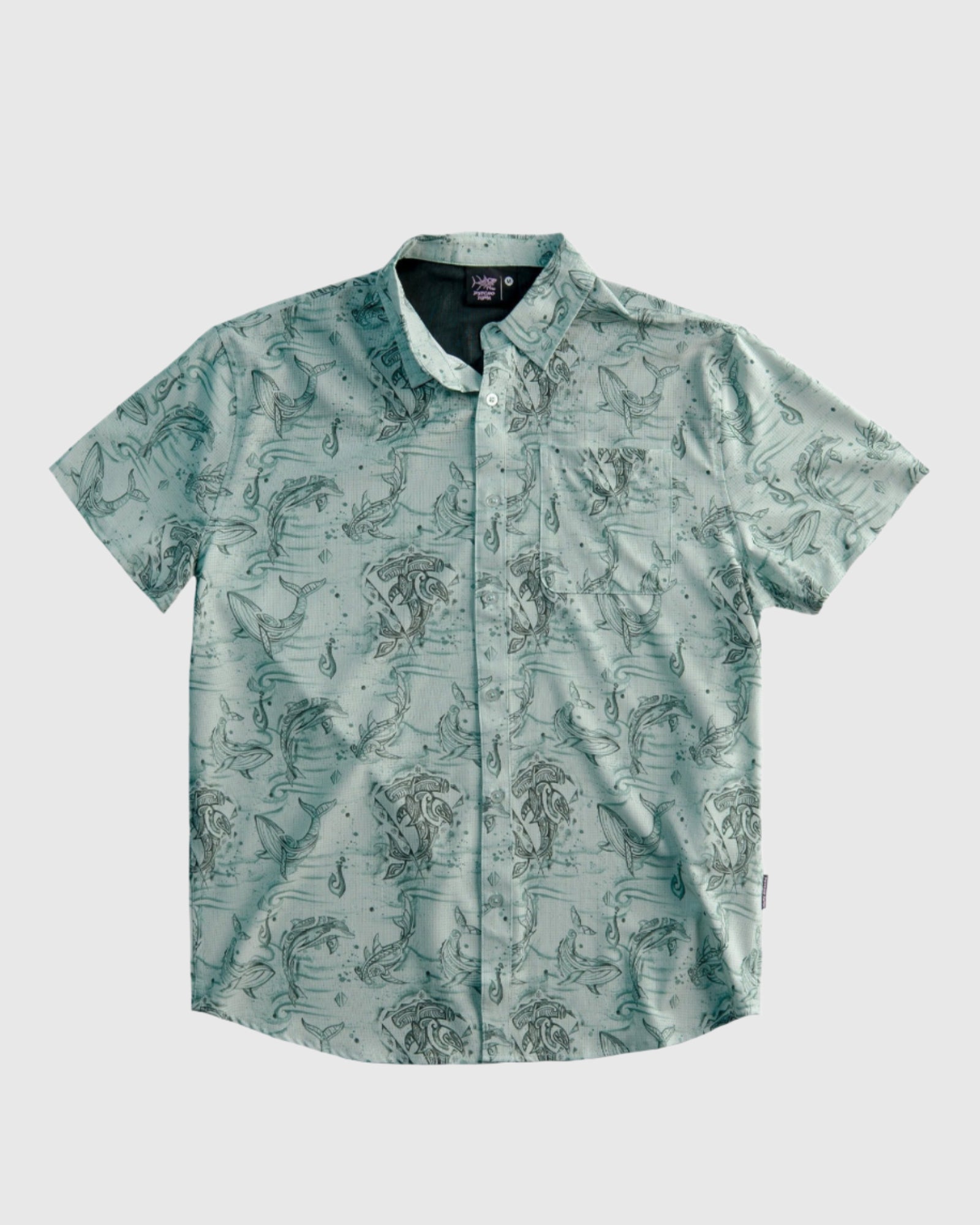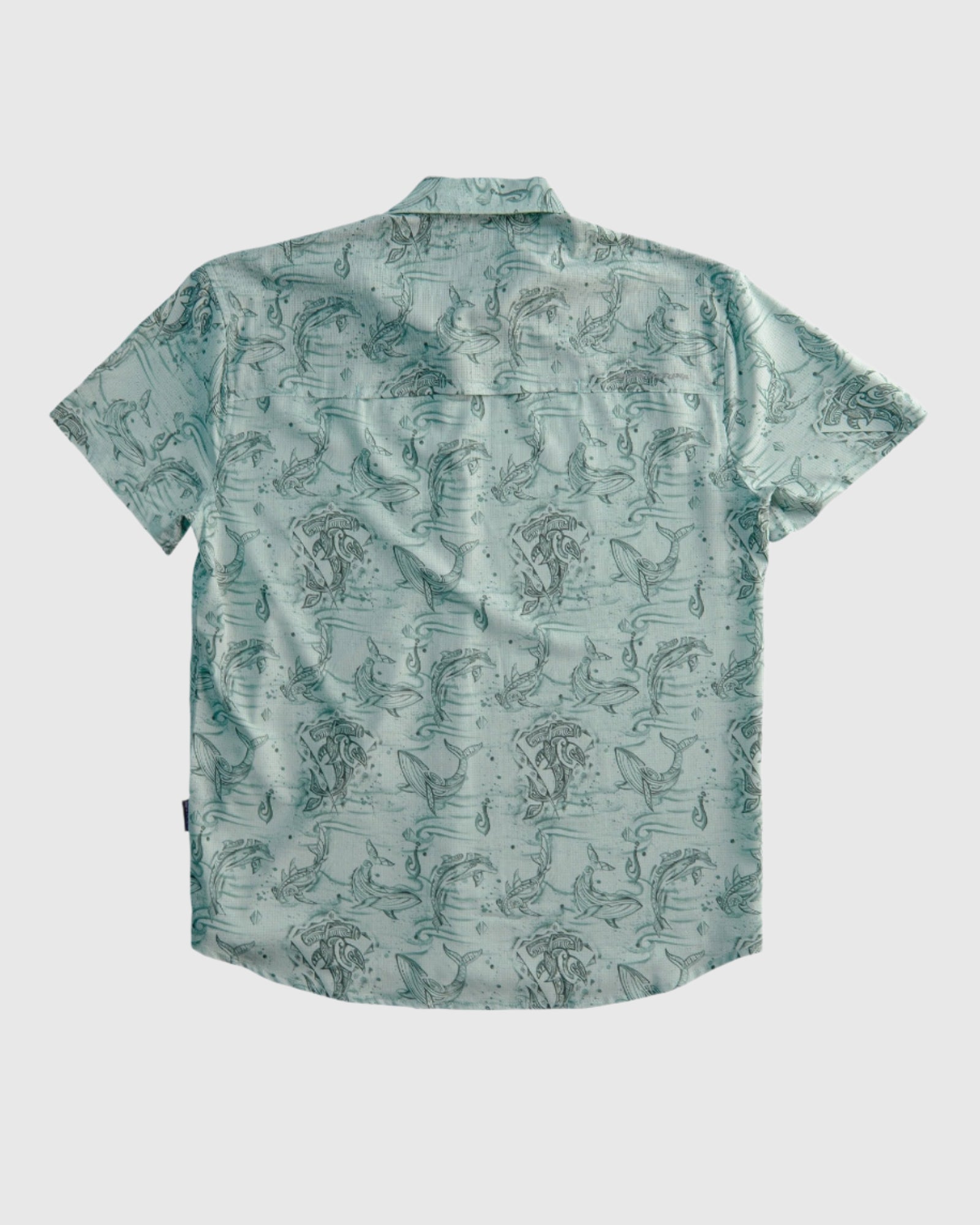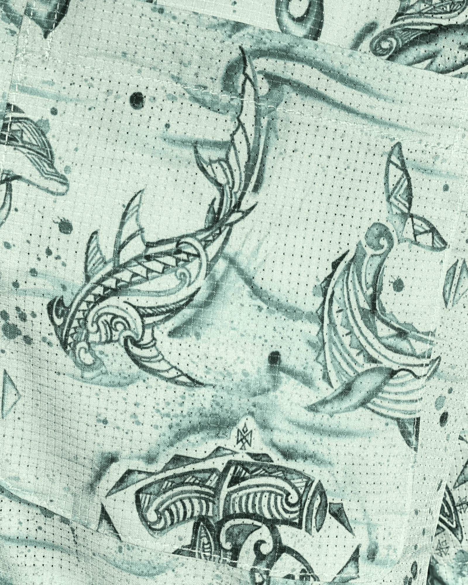 The design is a rad tribute to the ocean’s majestic creatures, featuring an all-over print of hand-drawn art. The stencil wave style captures the fluidity and power of the ocean, while the detailed depictions of sharks, whales, and dolphins evoke the mystery and beauty of the ocean depths.