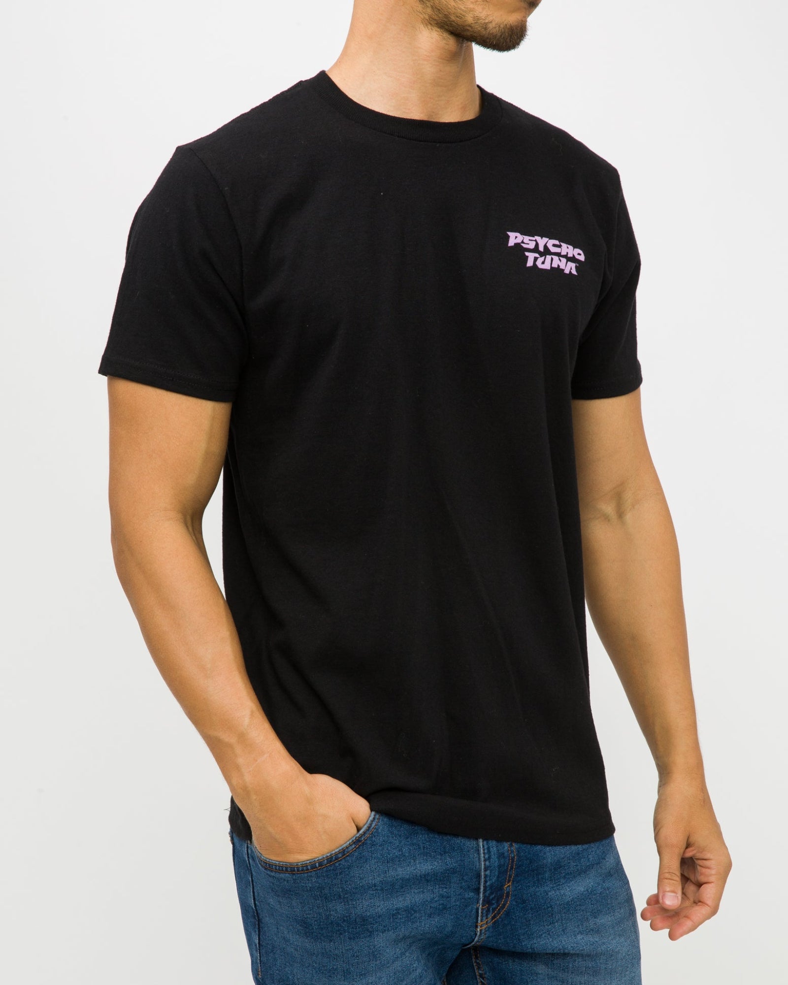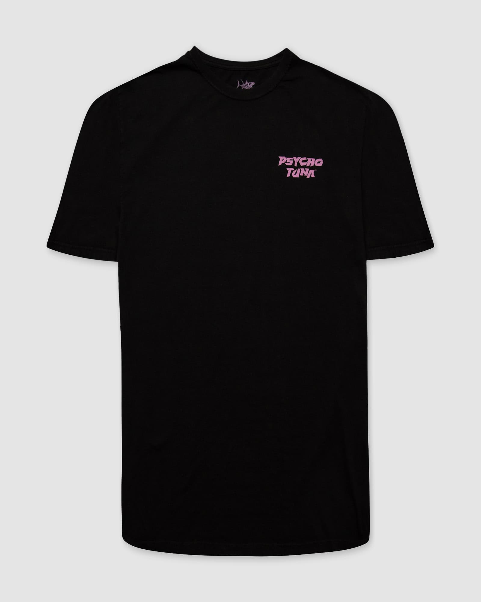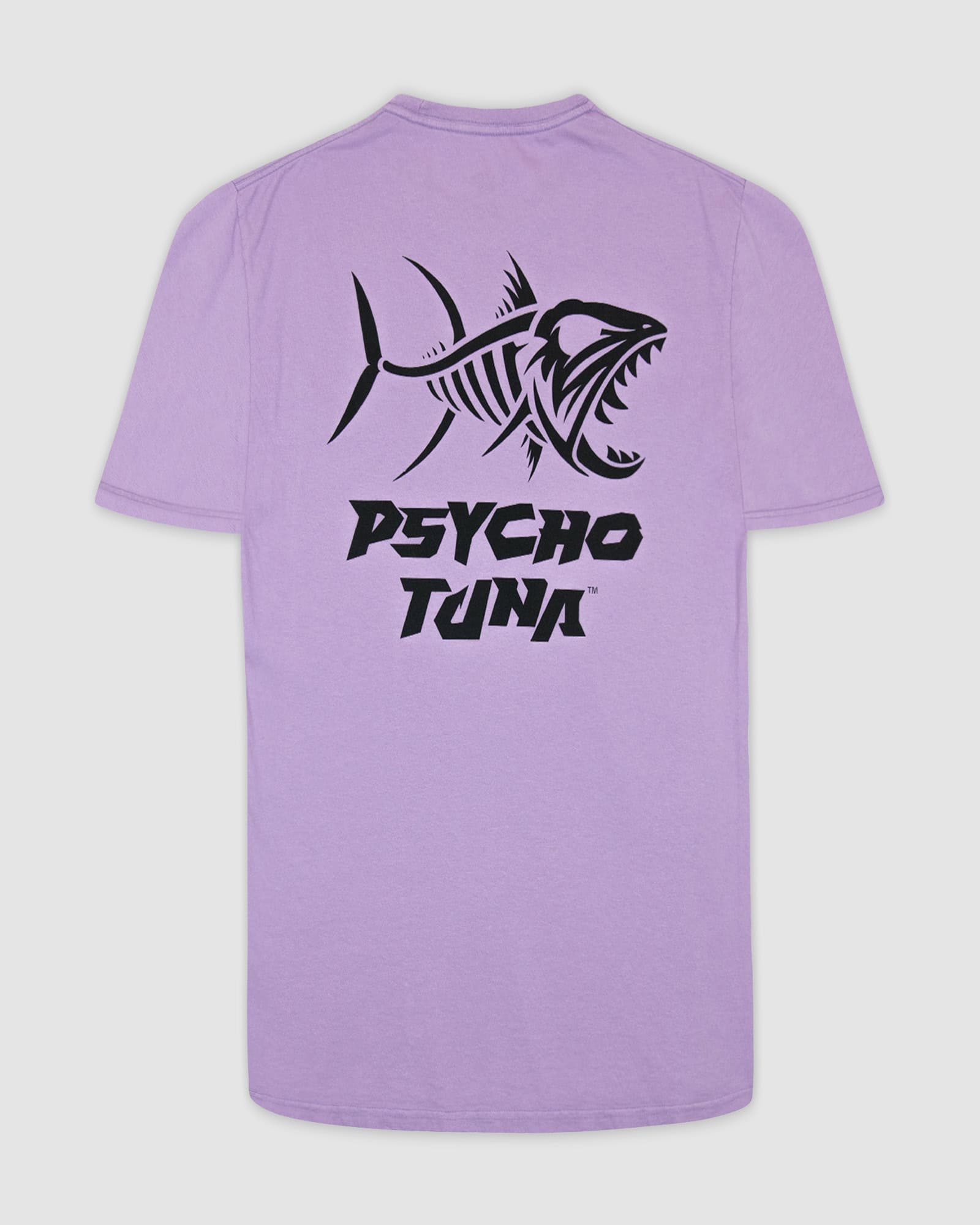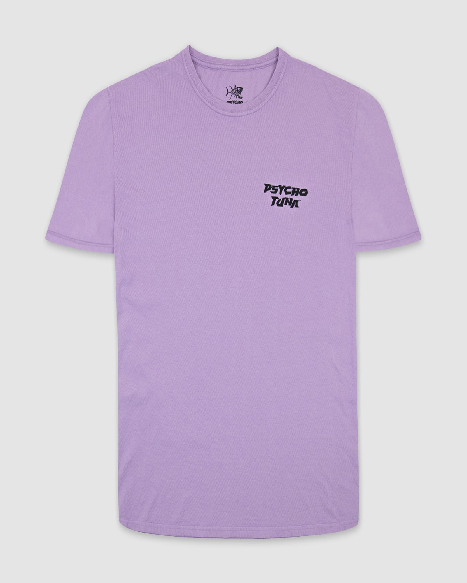 Classic Psycho Logo Graphic Tee. Short Sleeve. Featuring hand drawn artwork. Super soft pigment dye cotton. Available in Black and Lavender. Screen printed front and back. 100% Organic Cotton. Available in S-M-L-XL. Made in the USA.