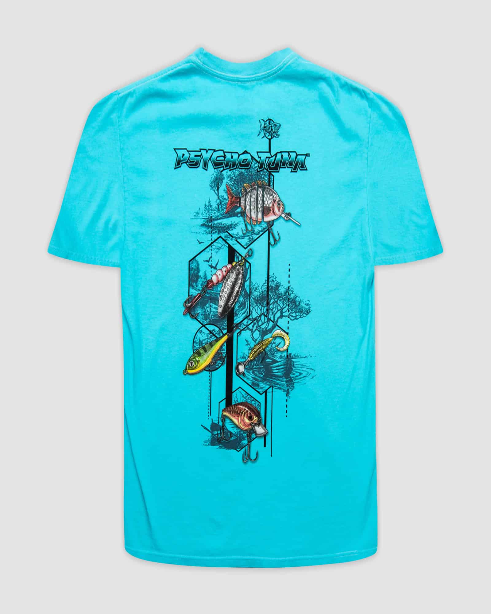 The Geo Lures tee is for all those fishermen out there! Featuring hand-drawn artwork. Screen printed. 100% Organic Cotton.
