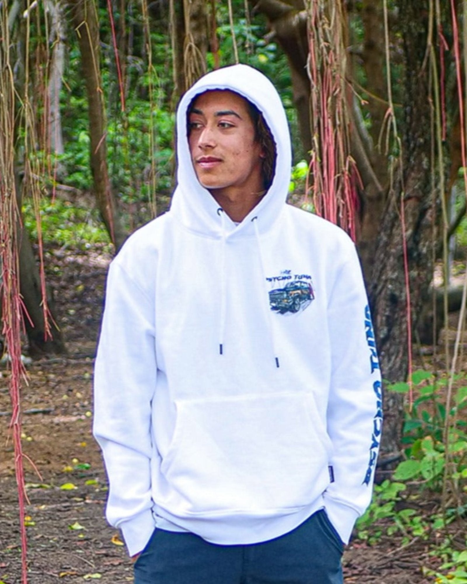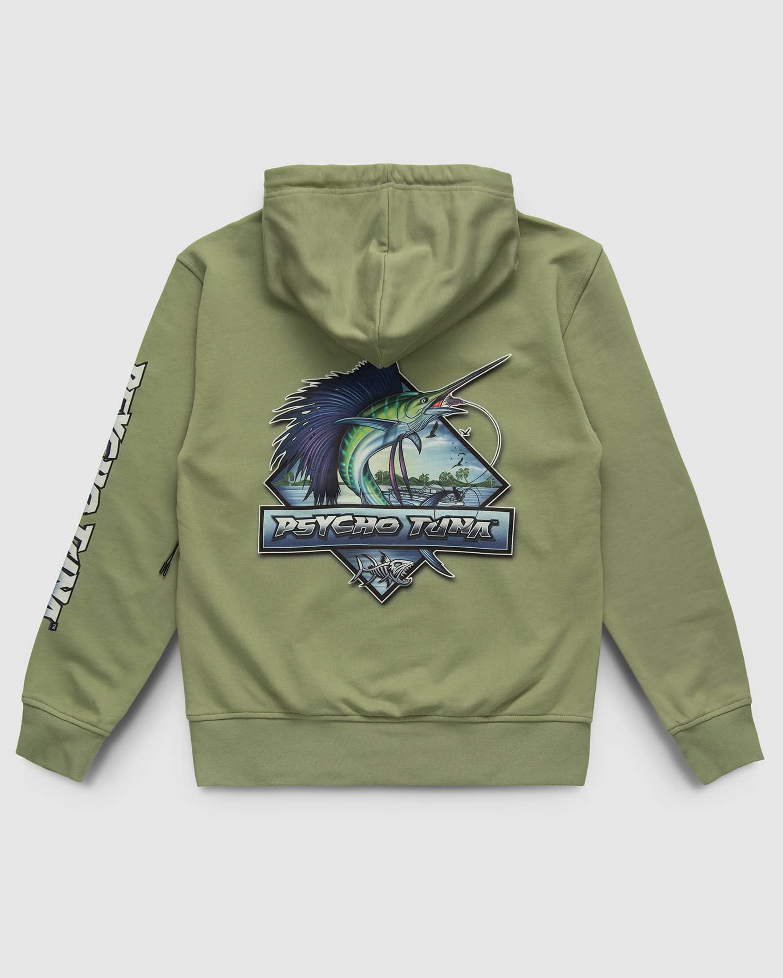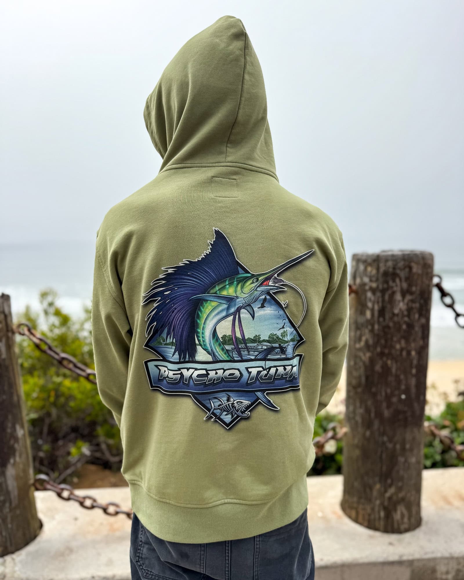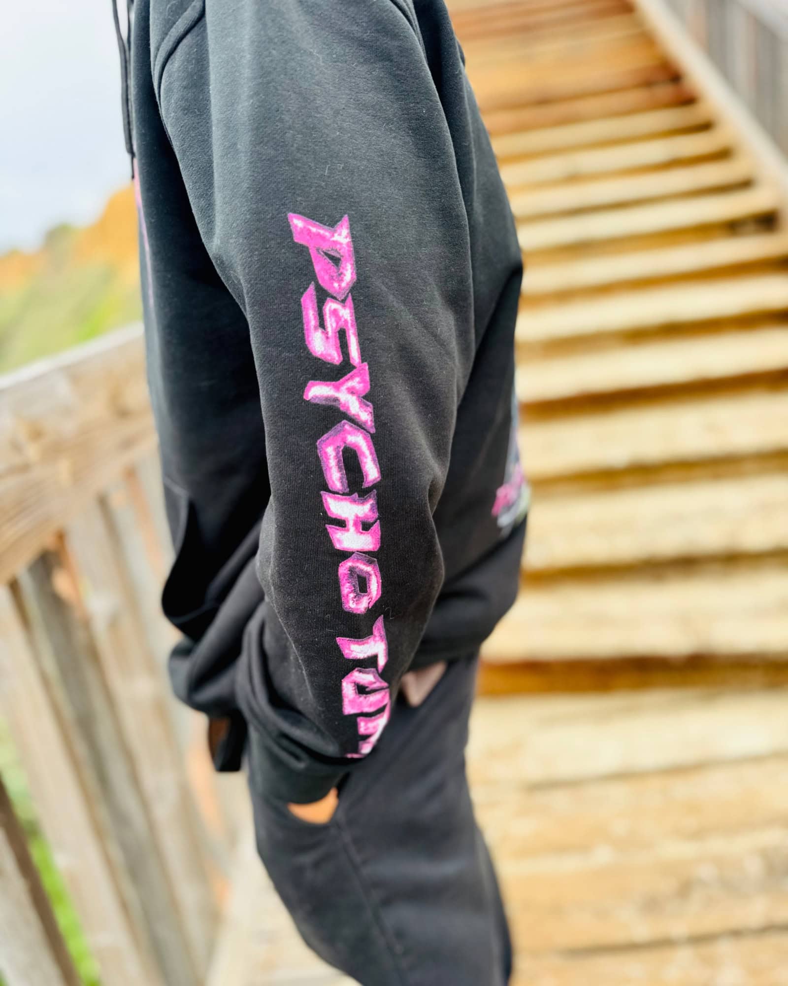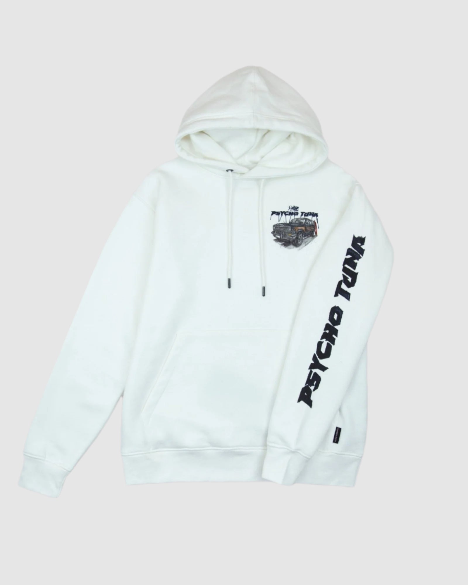 Relax in style with the Psycho Tuna Hoodie. The Psycho Surf babe Hoodie is a classic construction featuring long sleeves and adjustable drawstring hood with bold Psycho Tuna graphic at the back. This hoodie is suitable for exercise and play. It is made of cotton and is machine washable for easy care. This comes in black and lt grey. and is available in sizes S, M, L, XL, and XL are available.