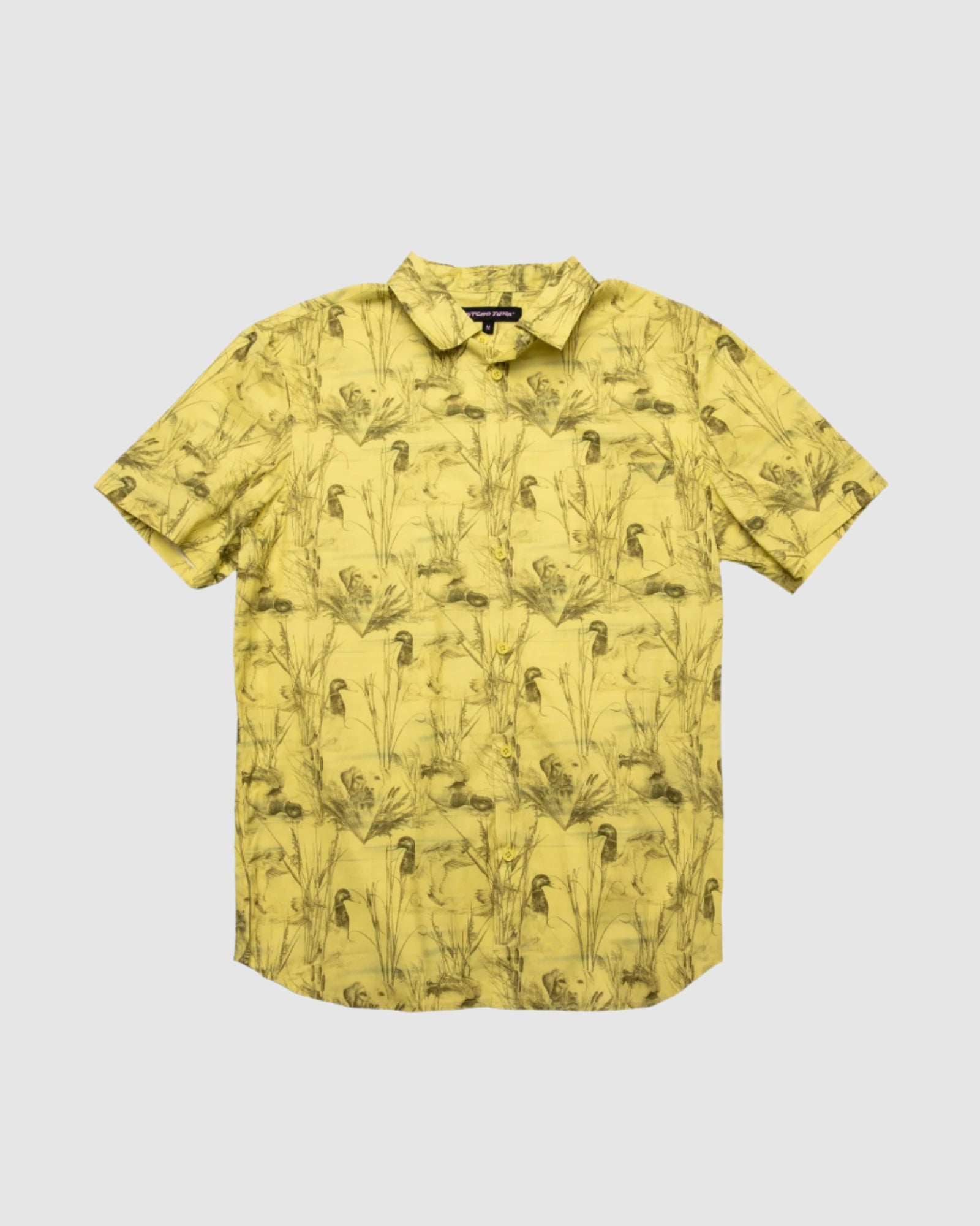 Experience the perfect blend of style and comfort with our laid-back shirt, adorned with a distinctive, full-print graphic of ducks. This design adds a whimsical touch to your everyday attire, making it a unique addition to your wardrobe.
