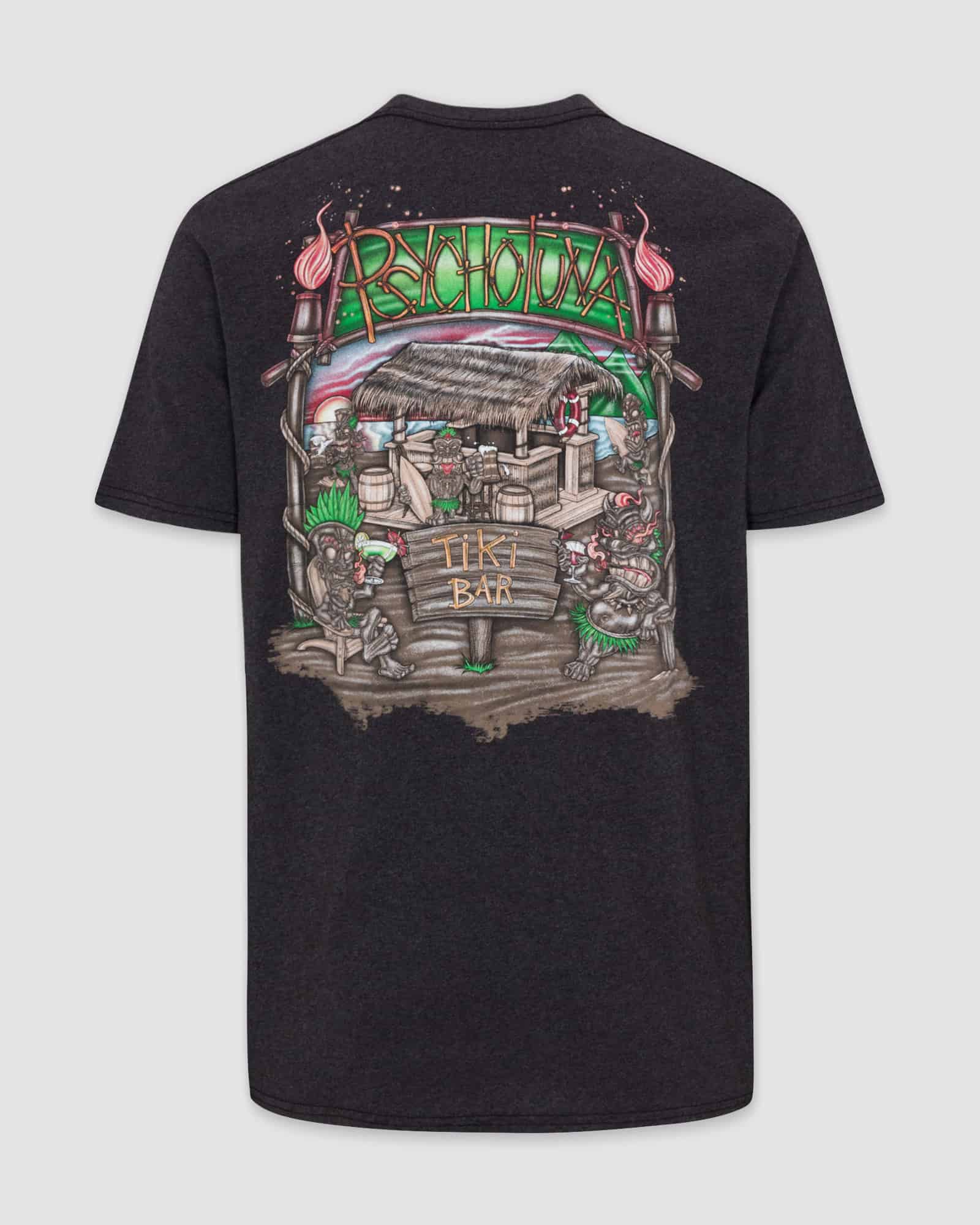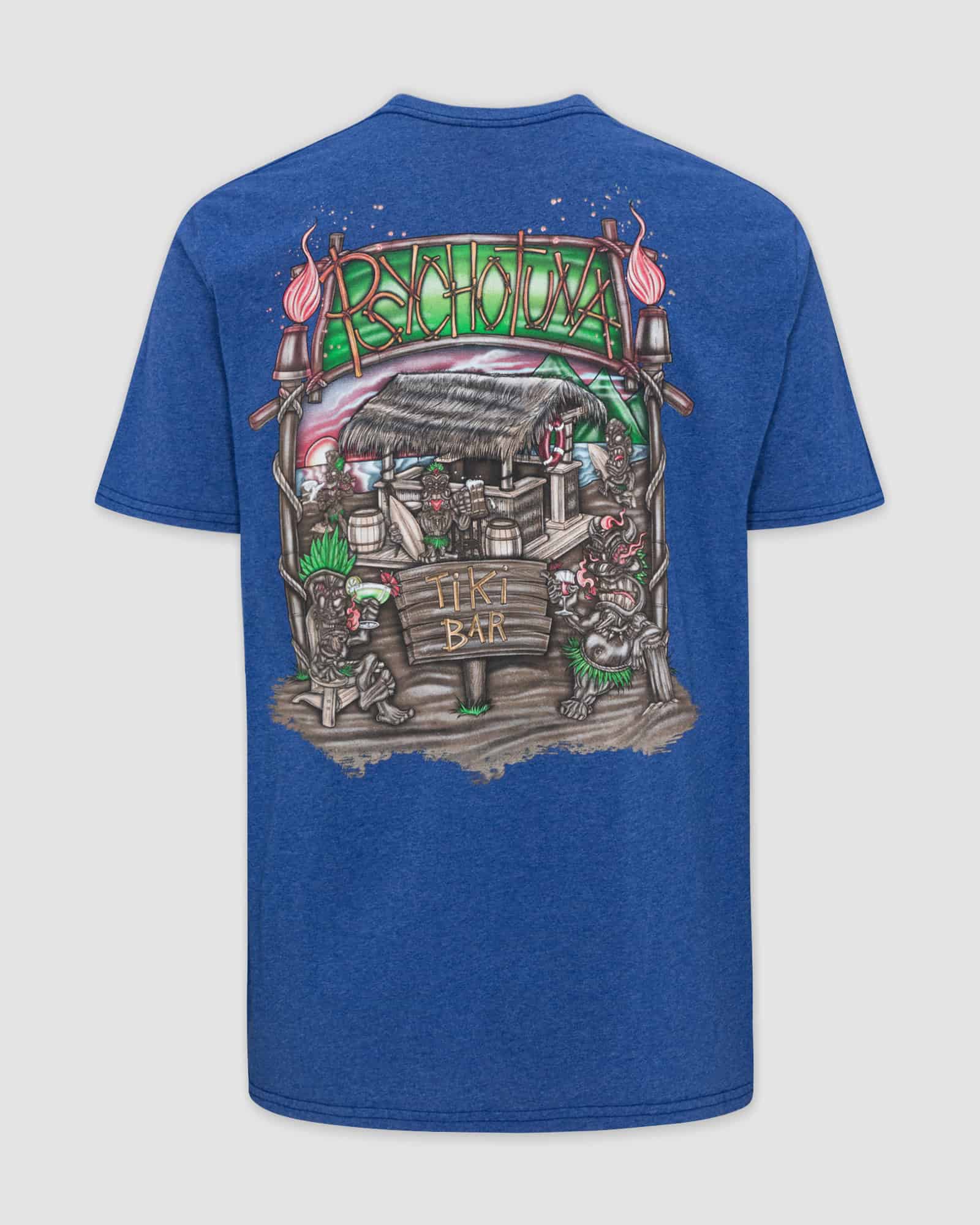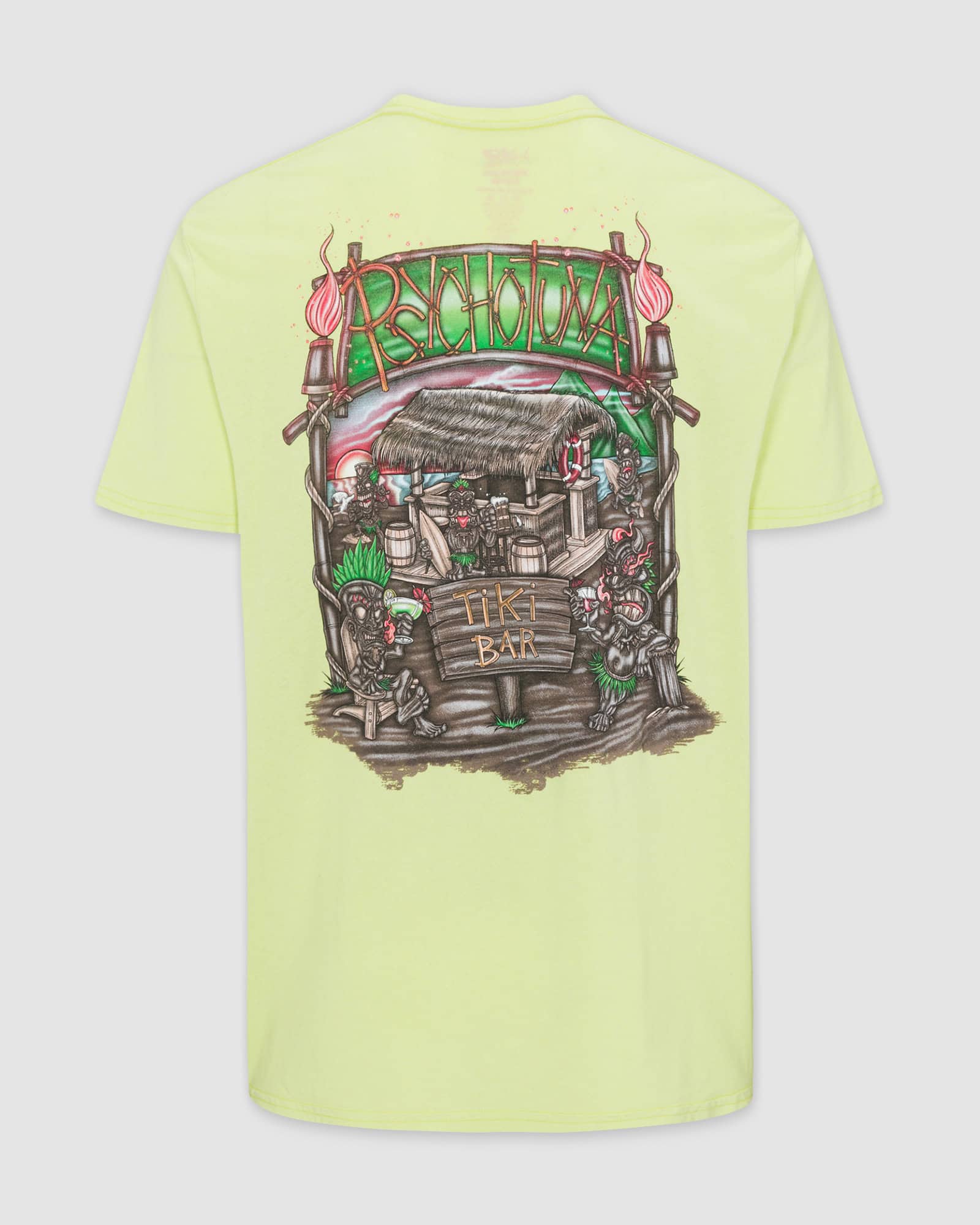 Ride the wave of style with the Men’s Tiki Bar Short Sleeve Graphic Tee by Psycho Tuna Clothing!