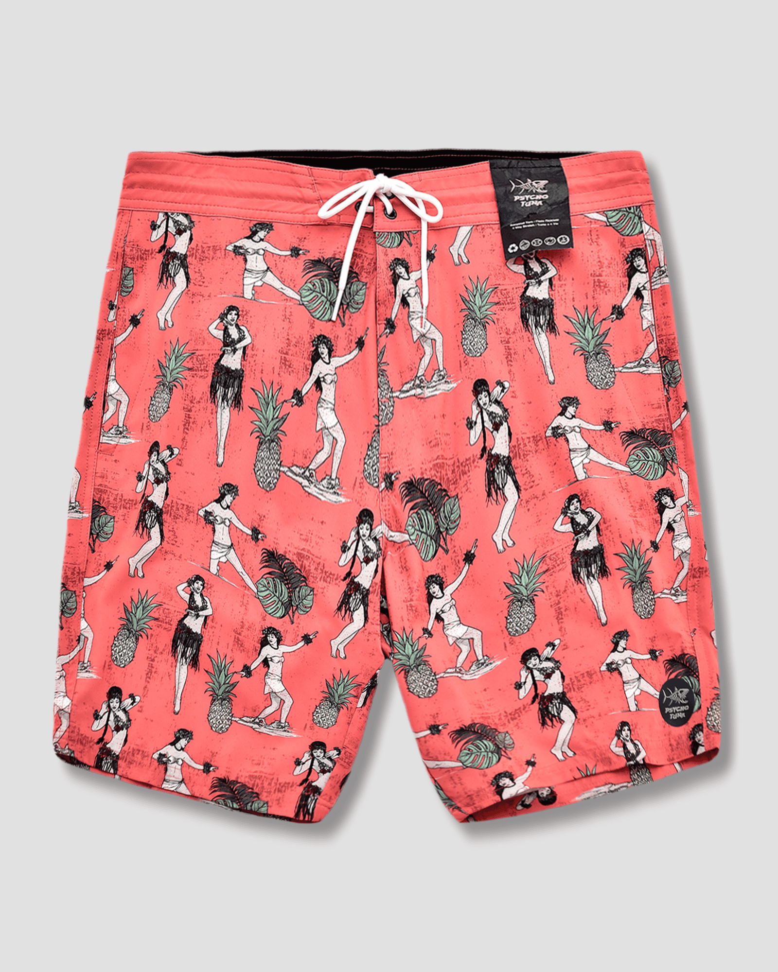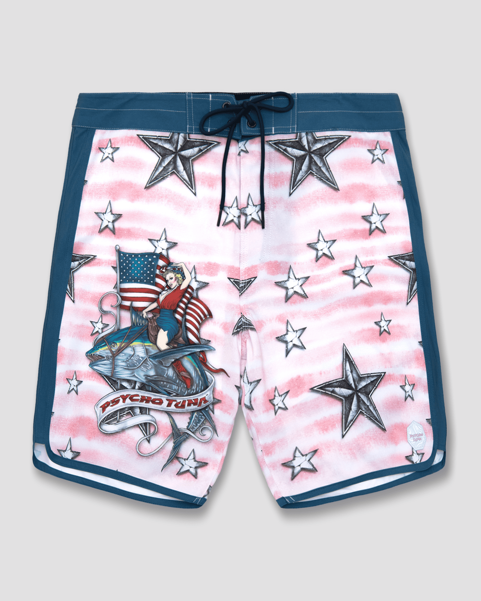Must have essential summer short from Psycho Tuna and the Penquin Crew swim trunks. They feature a beautiful graphic design waistband with adjustable drawstring, and two mesh pockets at the side, with a relaxed fit. These swim trunks are suitable for exercise and play. They are made of 100% polyester, and machine washable for easy care. They come in color Penguin Crew, and size S-XL are available.