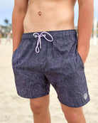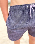 Ride the waves in style with Psycho Tuna Clothing's Abyss Swim Shorts. These shorts feature an intricate topographic print on a solid background, creating a unique illusion that's both fashionable and trendy for surfers.