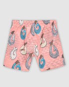 These killer swim shorts feature an all-over print of hand-drawn fishing hooks, intricately designed with Hawaiian tribal engravings. Some hooks are depicted as gleaming metal, while others are beautifully carved from shells, creating a striking contrast against the vibrant backdrop. The detailed artwork brings the spirit of the islands to life, making these shorts a standout choice for any beach or poolside adventure.